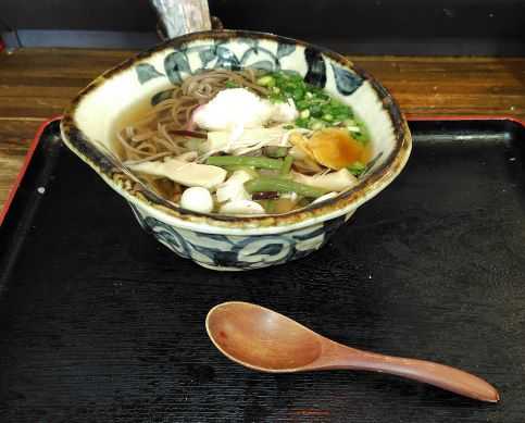なかなか空腹にならなかったので、昼食は少し遅い時間になった。 あまり食べられないので、長野県だし、ソバを食べようと思って目に付いた「桂亭」に入った。 カウンターの上には外国紙幣がたくさん貼ってある。 串揚げが売り物の店らしかったが、とても食べられそうにないので「山菜そば」700円を頼んだ。 関西風のおつゆでさっぱり。 器も凝っていた。