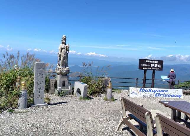 滋賀県に行ったことがないので、伊吹山と琵琶湖周辺を巡る一泊二日のツアーに参加してきた。 まずは伊吹山。岐阜県と滋賀県の県境らしい。 有料道路をかなり登る。けっこうな山なのだ。 長いこと登ってやっと駐車場に到着。眺めはいい。 登山道は三種類あり、うち一本は下り専用。 緩やかな坂道を登るコースと階段のコースがある。 添乗員には1キロで40分のコースを登るように言われ、そちらから登った。 眺めが良く、傾斜は緩いのだが、山全体が岩山らしく、大きな石が顔を出していて、その隙間に砂利が敷いてあり、歩くとそれが少し動く。歩きにくい。 大きな石を砕いている業者がいた。 途中で諦める人もいた。 伊吹山は、ヤマトタケルが大きなダメージを受けた場所。うっかり言葉に出してはいけないという話。 頂上にはヤマトタケル像があったが、老人のようでイメージが違う。 山の神が姿を変えたイノシシの像もあった。 イビキ山の神を祀るなら、こちらをメインにすべきではないか。 頂上からの眺めは素晴らしい。 ただ、そこらじゅうに、獣害を防ぐためのフェンスが張り巡らしてある。 どうにか無事に頂上まで往復できたが、思いのほかハードだった。