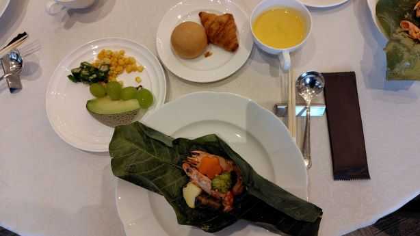 前橋市への日帰りツアーに参加した。 昼食は、結婚披露宴も行われる「アメージンググレース」というところで。 和食風の、エビの朴葉焼きがメイン料理で、パンとサラダとシャインマスカットとメロンは食べ放題。 天井にはこんな照明。 結婚披露宴が行われる割には、トイレの個室数が少ないのが不思議。