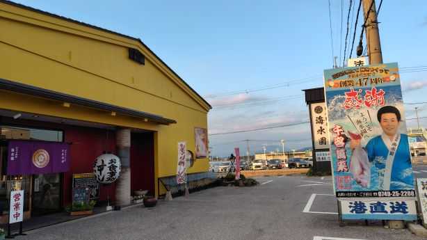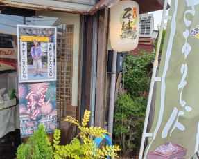 竹生島に渡るための船着き場。 待合室はエアコンは効いているが、あまり広くはない。 売店もないが、コンビニは歩いて行けるところにある。 すぐ前のそば屋には、写真のように、火野正平を偲ぶ写真があった。