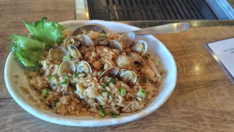 若山牧水記念館を見た後、歩いて沼津港へ戻り、昼食場所を探した。 飲食店はたくさんある。ただ、あまり空腹ではないので、簡単に食べられてあまり量が多くないもの、ということで、目についた「漁師チャーハン」を食べた。 アサリがたくさん入っている。貝とイカが好きなのでおいしく食べた。