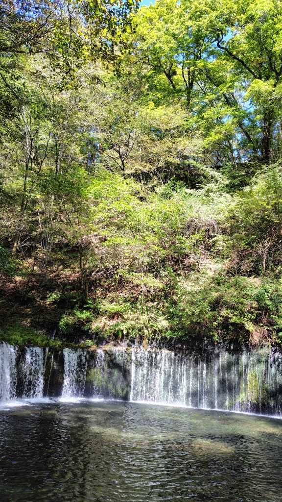 白糸の滝は二度目。やはり人が多いのだが、驚くのは、ここにもクマ出没注意の注意書きがあったこと。 こんなところにも出るのか。