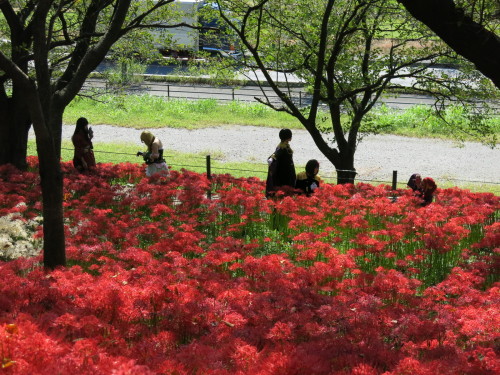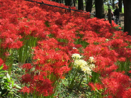 北側の斜面もきれいだったが、南側の斜面には、隙間なく曼珠沙華(彼岸花)が咲いている。