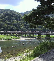 26日~28日、娘と2泊3日の京都旅行へ行ってきました。京都は暑かったけど、楽しかったです~。帰ってきたら、キッチンが散らかっているんじゃなかろうか?とか洗濯物が山になっているんじゃなかろうか?とか心配しながら帰ってきたけど、キッチンも思っていたよりキレイだったし、洗濯もちゃんとやってたみたいです。やれば出来るじゃん。『M(娘)と京都行ってくるから~。』と軽~く言ったけど、特に何も言わず、気持ちよく送り出してくれた夫にも感謝です。明日からまた日常が始まるかと思うとちと憂鬱ですが、また楽しい旅行に行きたいので、コツコツと働いて小金貯めて、また気持ちよく留守番してもらう為に、地味に家事に励んで良い主婦しま~す。京都に着いて最初に行った嵐山・渡月橋の写真です。時間があればまたボチボチ旅行記など書きたいと思ってます。(最近このフレーズ多いけどなかなか更新できてないのが現実なんですけどね。)
