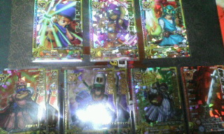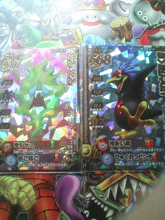 あははは…(°∇°;) 相方、お休みだったので今日も行っちゃいました。 プレイ中心で!って心に決めていたのに…。 という訳で配列です(〃▽〃)。パック頭からスタート 9クレ スライムつむり ↓ 15クレ 正義のそろばん ↓ 11クレ はじゃのつるぎ ↓ 13クレ ダースドラゴン ↓ 51クレ〓 オーシャンクロウ ↓ 16クレ イエティ ↓ 14クレ ばくだんいわ ↓ 14クレ 仁王立ち ↓ 13クレ マネマネ ↓ 7クレ ほしふるうでわ でやめ! ハマり…すごいよ…今回(T_T)。 レンコ打ち止めです。 あと、ゆうわくの踊りとまじんのよろい………引けるのか? いや、無理だ。 値段が落ち着いたら、オクでゲットだな…。 マーニャちゃん以外のSPカードが揃ったので、とどめの一撃いろいろ出してみました~。 アリーナ可愛いし、クリフトはキレちゃうし(笑)、ライアンはホイミン打っちゃうし、トルネコのおっさん呼びは最高でしたよ。 ギガソードのときのミナデインも捨てがたいですねヽ(≧▽≦)/。 マーニャはどんなのかな? 日曜日、お友達に会えたら見せてもらおうっと。