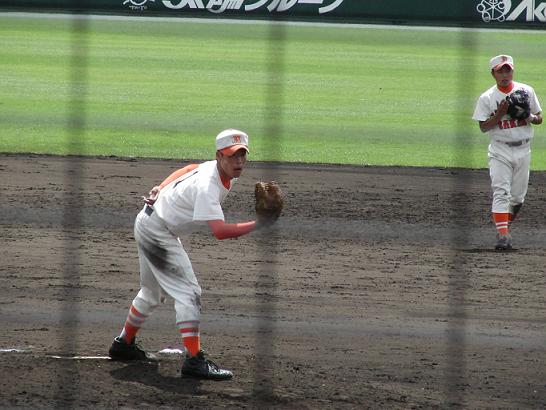三回度目の正直なるか?駒大苫小牧を倒し甲子園出場を果たすか?北海道栄先攻 栄 投手・中野 捕手・大西 一塁手・田野端 二塁手・佐々木陵 三塁手・村山 遊撃手・新城 左翼手・佐藤 中堅手・佐々木光司 右翼手・京極対して北北海道地区の意地を見せるか!?釧路江南後攻 江南 投手・武山 捕手・藤原 一塁手・大畑 二塁手・北川 三塁手・上田 遊撃手・伊勢 左翼手・工藤 中堅手・田中 右翼手・山根毎年・毎回の大会 一見地味な野球な北海道栄と思われがちだが夏大会は2003・2004決勝進出の輝かしい実績を持っている強豪校 又、釧路江南は結構アグレッシブな野球で私学を苦しめているチーム この対戦面白くなりそうですよ。初回 栄が先制の1点を挙げる。決して打力のチームで無いのだが引き締まった試合が多いのが特徴のチーム この前年の夏決勝では駒大との接戦を惜しくも逃したが好ゲームだったそしてこのチームも実に栄らしいチーム!! だが!!粘りでは負けない江南は2回に1点を返して同点、試合は再び振り戻しになる。江南で思う事だが毎年釧路から札幌まで応援に駆けつける父母の皆さんの応援の熱心さに心暖かくさせていただいているし、そしてナインの全力プレーには毎春/秋に江南の試合を見たくなるさせる魅力がある。試合は序盤を1-1で終えて、中盤を迎える!!この試合どう動くのか?栄か?江南か?どっち!!流れは互角だった。四回の表・栄は欲しい勝ち越しの得点2点!!さて江南はどう動くのか?!ここは見所さあ注目して見てみましょう、、、だが江南は得点に至らずこの回を終える。栄の五回・攻撃容赦なくこの回も1点を加えて4-1で五回裏の江南攻撃ここで、試合のその時を迎えますなんとしても点が欲しい江南だが、だが、だが、である。栄の壁が再び立ちふさがるのだ。何とかしたい江南に対しての栄も抑える事で試合の流れが欲しいのだ!流れの奪い合いこれこそ高校野球の醍醐味だろう 江南の五回裏を0で抑えた栄、抑えられた江南。ここで一つ疑問 なんでだろうか?駒大の試合は普段来ない人まで来るのに、どうして試合が終わってすぐ帰るのだろうか?高校野球は駒大だけではない。普段なかなか見れない北のチームが見れる春&秋なのにね。せっかく駒大で興味持ったのなら高校野球全体に目を向けて欲しいと思う。良い試合は以外でも結構有るよ 来たれよ 円山・麻布へ!楽しいよ!脱線しましたが話は試合へ戻ります六回表 栄 中押しの2点を挙げこれが正直大きかった先制・中押し・ダメ押しで二つまでを栄が手にするこの後 江南は7回、八回に1点ずつを入れるが如何せん遅かった。結果6-3で栄が勝ちあがったのだった