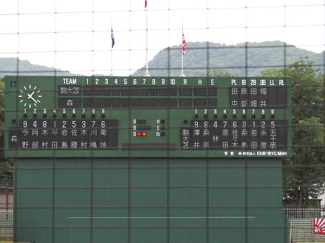 86回大会この大会は後に記憶に残る大会だった。当時あまり注目されなかった分野だったのかもしれないがこの試合は特に注目されていない気がしたがこの年の支部予選で鵡川と駒大が同じブロックに入り、苫小牧東高は正直ついていたと思うが全道大会進出を果たし、この試合となった先攻東海大四高校 投手・前口 捕手・鹿野 一塁手・峯島 二塁手・梶川 三塁手・川村 遊撃手・木幡 左翼手・阿部 中堅手・渡辺裕 右翼手・江上後攻苫小牧東高校 投手・山田 捕手・渋川 一塁手・浜 二塁手・熊沢 三塁手・加藤 遊撃手・中村 左翼手・難波 中堅手・三上 右翼手・柴田主審・岸 一塁審・猪俣 二塁審・加賀屋 三塁審・堀井この年の東海は恐らく近年で一番強かった気がする。特にエースの前口の投球もさることながら、その打撃力は群を抜いたものを感じた。それにサードの川村の打球の早さも、またそれである。対しての苫小牧東は?支部に足を運べなかったのでチームの評価は出来ないがホリ太郎的には応援しているチームの一つだといえる。何故か?それは少し時間が遡り約九年前の頃(だった気がする)まだ佐藤先生も鵡川にいない時の頃です。選抜に出場した東高に苫小牧の少年野球チームの三光ドラゴンズのメガネこと寺沢が甲子園のマウンドに立ったとき、隣の中学出身の小笠原がレフトで出場した時の頃です。対戦校は浦和学院でかなり手ひどくやられたが知っている人が出ていただけに、兄弟とテレビの前で応援をしていた。 その日あの時の事を思い出し円山の坂を上ってきていたのだ(御猿君と共に!!)試合は開始から東海ペースだった こらえる東高 序盤三回を終えてスコアは0-0で中盤戦へ舞台は移行するこのままこらえれば東校に勝機が見えるのかな?と思ったが東海は甘くない4回表に一気に三点をいれて3-0、やはり東海か、、、。グイグイ攻める東海・前口東もランナーは出して反撃を試みるが遮る東海ナイン五回は両チームが健闘し無得点スコアは五回を終えて3-0苫小牧東高の応援団もようやく到着し、反撃かと思えた試合中盤戦でしたが、、、、。そして その時 両チームの明暗と東海の打撃が試合を決めた 運命の6回の表この回を御猿氏はこう回想している御猿)『東海の連打が止まらないんだ!!大変な事が起きてしまった。苫小牧東高にとって非常にアンラッキーなヒットが有ったかもしれないが、この手の試合展開ではこのようなケースが起きうる事もまた事実なのだから東高ナインは下を向く必要は無いだろう何故ならば懸命にプレーした結果を批判する事が誰に出来ようか?試合の後の観客の拍手は惜しくも負けたチームへのエールでもあるのだから』という御猿のコメントも有った。試合はこの六回に東海が連打で10点を決めて終了したこの後に東海は札幌第一を破り、駒大苫小牧戦で名勝負をするがそれはまた次のお話で、