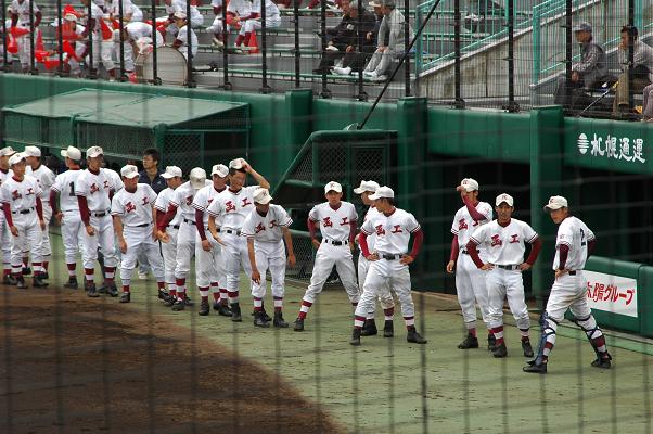 5月16日~待ちました待ち焦がれました。高校野球です鵡川対駒大苫小牧先発Pは鵡川が成田駒大は久田でした駒大のシートはショートバンドの処理が抜群に上手いこの点は全国でも一級のものがあります勿論甲子園でもシートはやるので各校見ましたが駒大の守備は本当に上手いと思う。夏にはどんな事になっているのか?楽しみです対しての鵡川~正直~地区の三回戦でこの組み合わせを見れる苫小牧の人が羨ましく感じましたよ!って位に仕上がりの良さを感じました鵡川の佐藤監督~仰木さんみたい?試合はイニング毎に纏めると鵡川は1~2回は苫小牧・先発の久田を打ちあぐねた感じで一押しが足りずに抑えられた印象が残る苫小牧も1回は順調にランナーを出すが肝心な場面で一本が出ない。Pの踏ん張り勝ち鵡川三回、相手の失策がらみのランナーを抱えてピンチを迎えてPが打たれ2失点ファーストの守備が悔やまれる苫小牧は、その後6回まで鵡川・成田のストレートに手が出ない。打ち上げフライが目立つ鵡川は3回以降にランナーを出すがこちらも決め手に欠け、先制はするが中押しができずに終盤まで至る打線が沈黙状態の苫小牧は6回から交代した鵡川・村上を攻め立てこの回4点を入れて逆転七回にも1得点して5-2として中盤を終える終盤は9回に鵡川が2アウトでランナー満塁のチャンスを迎えるが、しかし駒大・増田に阻まれ試合は終了した