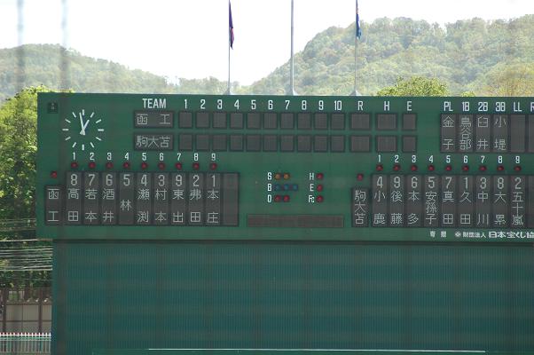 春季全道大会~決勝駒大苫小牧ー函館工業特待生が居ないチーム~ここできっかけを掴み夏の舞台へ臨みたい選手達六年振りの決勝戦ので夏への飛躍の踏み台としたいチームそれぞれの思いが交錯するなか~始まった試合先制点は駒大が先制し2-0その後のイニングにも加点し続けて4-0 6-0六回に函工も1点返しますが~反撃もここまで