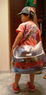 すっかり梅雨が明けて、猛暑が始まったねぇ。昨日は、まだ娘が病み上がりやった為、papaと息子だけ、近くの市営プールへ。久々にDDノベのBAG登場。 ってコレ、プールの時以外使うことある?ちなみに直営限定カラーのネイビーもあるんですけど…一日娘と家で過ごすけど、この引きこもりに耐え切れなくなった娘が暴れるわ暴れる…><なんで急遽、ベランダプールを出したがなっ。えっ、出すの遅いかしら?鼻水垂れてたけど、長い間楽しんではったわ…この水着はSALEで購入した、ラグマートの。 ビキニがいいとか、チェックかドットがいいとか色々思ってたけど、結局近場に買い物行った時にあっさりと購入しちゃった…花柄のブリブリワンピやし~~~。今朝は、旦那4時半に起きて、何してるねん?って思ってたら、なんと、セミの幼虫が木に登ってくる姿を、息子に見せてあげたいと言って、息子をたたき起こしてた…前々から見たいって言ってた息子。そしてそれにノリノリだった旦那。はぁ、二人とも虫バカやわ…しかし公園に行った時にはすでに木に登ってたみたい。でも何十匹の白い幼虫が、どんどん茶色になっていく姿を見てたんだって…殻やぶってセミが出てくるところはまだまだ時間かかりそうやからって1時間ほどしたら戻ってきてたけど。幼虫のままアリに食べられてたり、木から落っこちてる幼虫もいて、それを助けてあげたりと、色々ドラマがあったみたいよ…二人とも興奮して帰ってきてた。しかし、あんたたち、何時やと思ってるのよ!!おかげで私まで起きてしもたやないのっ。まぁ、私は虫苦手やし、そういうことを教えてあげれないので、いいモノを見せてあげたね~って、旦那に感謝すべき!?ってか息子のためとか言いつつ、一番楽しんでたの、あなたですけどね~~~~~。