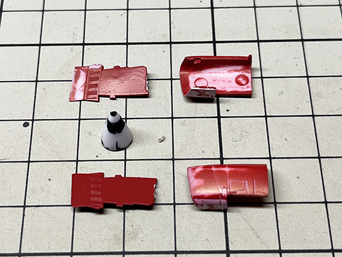 ノーズコーンは右側に変な段差が有るので(いつも思うのですが金型の問題か)カラーパテを盛って段差を解消。
