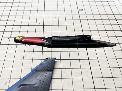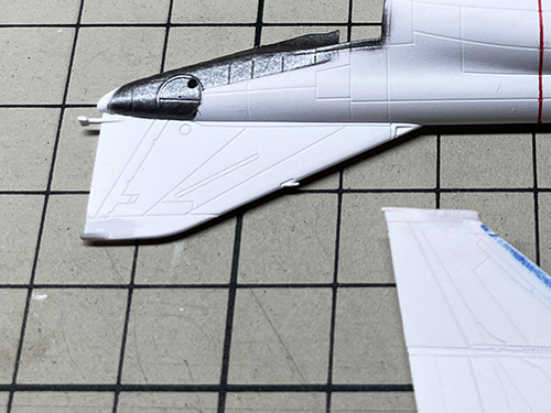 垂直尾翼上部のセンサー2個を削り落とし、伸ばしランナーでセンサー1個に。