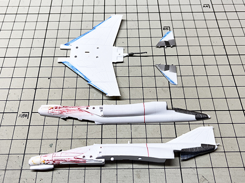 302空の方はワシと主翼・水平尾翼前端のブルーをヤスって塗装を落とし、モールドを掘り直し。