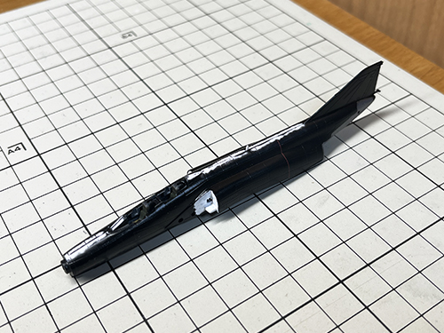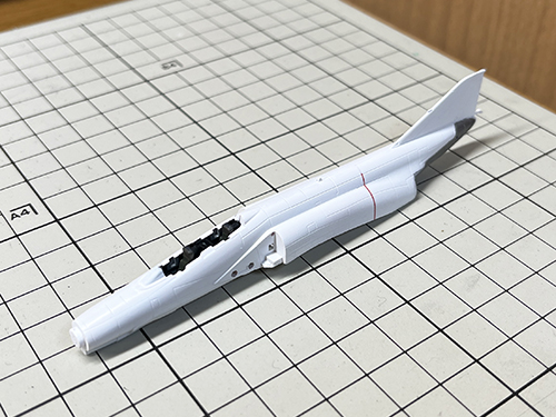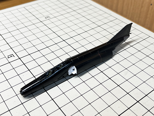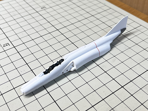 背中に貼る8空の ブラックパンサー のデカールに 変な段差が出るのがいやなので合わせ目消しをする事にしました。