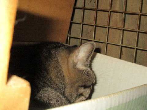 それぞれのお気に入りの場所で~ ユキ♀スチール棚てっぺんに置いてる箱の中で 純♂…
