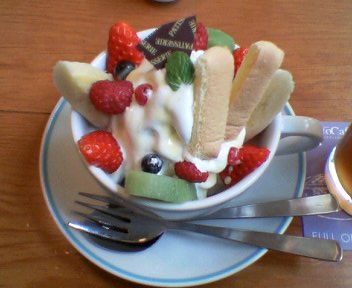 昨日、綺麗なおねえさんが、夏でもないのに袖のないドレスを着て、ピアノを弾いてくれるレストランに行きました。案外リーゾナブルな店なので若いカップルとか、家族連れが結構多かったです。大きなお皿にちょこっとだけ盛られたメニューがゆっくり出てきて、なんだか知らない間に沢山食べていたのかすごいお腹いっぱいになっていました。困るのは、初めにスプーンやフォークが沢山一度に出ててきどれがどれに使っていいのか????わからないこと。全部は使わないで沢山余ってしまうのですね。うちではこんなに、フォークは使わないですから。