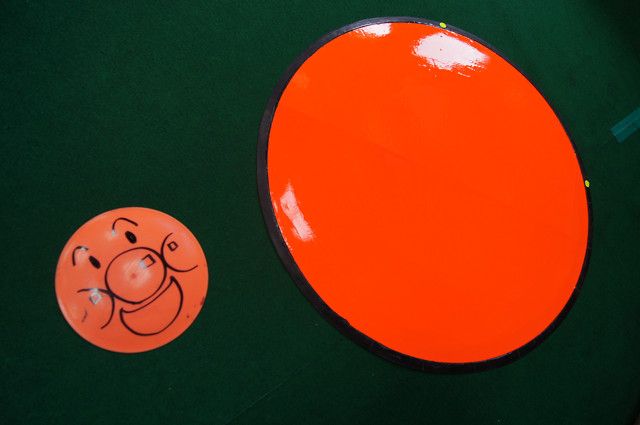こんにちはー HOTLAPですーコーナー丸パイロン 最高傑作! 谷田部アリーナのコースフェンスを制作する職人 古賀さんに丸パイロン作ってもらいました やー 素晴らしいどんな場所でも あっとゆうまにコーナー出来上がり 見やすいし(^O^)重いから動かないし これはいいね(^_-)-☆九州で行われた 1/12レーシングの大会のときのパイロンもこれねいやー レアアイテムだわー ありがとうございますーでかいよー