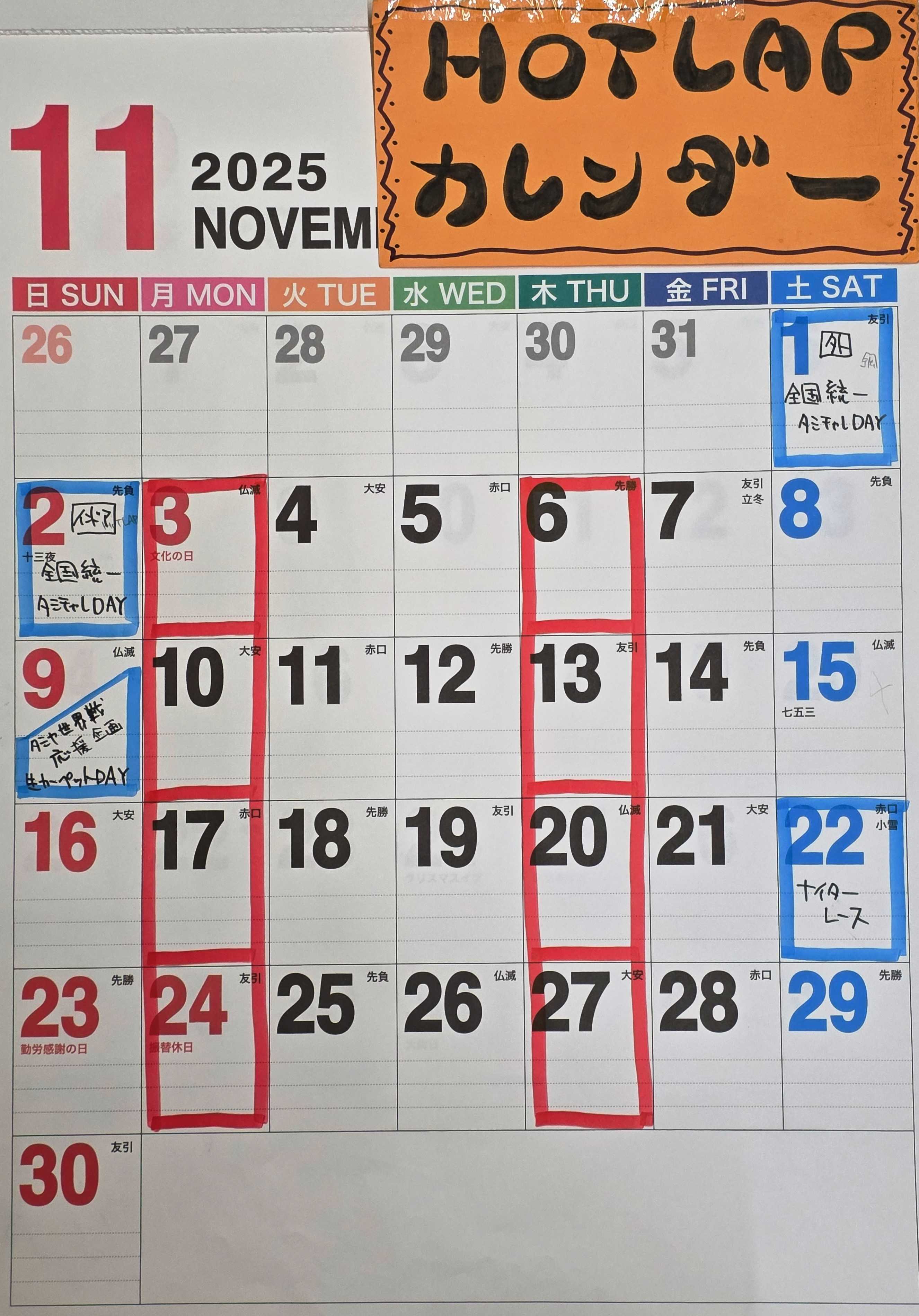 10月のカレンダー(^_-)-☆ 2025年10月01日