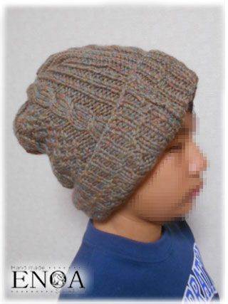 小6には渋い色だけど、普通のニット帽とビーニー帽にリメイクした。