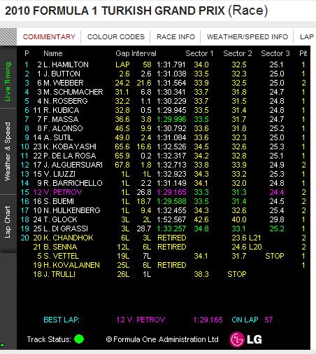 まずは小林可夢偉の初ポイントですね!後半かなり厳しい感じでしたが、イロイロあってポイントですね!レッドブル~やっちまったな~ふ~、やれやれ今後どうなることやら...マクラーレンは速かったね~雨がもうチョイ降ればまた一荒れあったのにね~