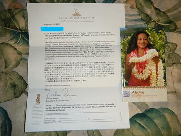 随分長い事、ブログアップしていませんでした・・・IDを度忘れし、どうする事も出来ずに1年以上放置していましたが、本日色々と試してみたところ、開通しました~かなり、前の事になりますが2010年のHAWAII旅行から再開します<2010年1月7日の日記 その2>またもや当たった招待券でポリネシアンカルチャーセンターへ。1人$142相当のデラックスパッケージのペア券。当たらなかったら行けなかったと思いますMAHALOホテルまで迎えに来てくれるから楽々のはずが・・・時間を過ぎても一向に来ない・・・ちょっぴり不安ガイドのおばちゃんが申し訳なさそうに「ごめんなさいね~ごめんなさいね~」と現れました。遅れた理由は、ヒルトンから乗るはずのお客さんが来ないから待っていたと・・・しかも現れなかったらしいしかも、タクシーでポリネシアンカルチャーセンターまで来るとの事。(アホか)↑こんなバスで迎えに来ます。途中1回の休憩があり、黒珊瑚のジュエリーなどを売る田舎のお店に寄りました。そこで、生のマカダミアナッツを割って食べさせてくれるコーナーがあったので、購入美味しくて私たちは気に入りました綺麗な東海岸の海や、ハワイアンハウスを眺めているうちに、センターへ到着道中はガイドのおばちゃん、しゃべりまくりでした中に入ると、チケットを渡され、日本からの留学生が案内してくれます。まずは『カヌーページェント』を見学。既に座る場所はなく立ち見でした。次は『トンガ村』へそこで、夫がステージに急遽立つことに突然「Yellow Shirt(イエローシャツ)!!」と呼ばれ・・・叫んだり跳んだりしながら太鼓を叩いてました英語の苦手な夫は最初戸惑っていましたが、吹っ切れたらしく、かなり面白い事をやらかしてくれ、後日ワイキキですれ違ったブロンズヘアのカップルに「Oh~!!Japanese Gay」と太鼓の仕草をしながら声を掛けられる事に他にカナダ人とアメリカ人の男性もステージに上がったんだけど、こういう事に慣れていない日本人にはちょっとシンドイかも終わっちゃえば、かなり爆笑物の、良い想い出になるんだけどね多分、呼ばれる数人の内1人は日本人を選ぶんだと思うので、これから行く人はEnjoyして来てねその後は、『カヌー』に乗ったり『フラダンス』のレッスンに参加したり色々と。薄暗くなってきた頃から、ディナー会場へ。デラックスパッケージの人が利用するという、ホールでの食事だったのですが・・・以前に来た事のある母曰く「マ〇イ」との事。覚悟はして行ったのですが、かなり激マ〇・・・結構値段が良いツアーなのだから、もう少し何とかしては如何でしょか・・・見た目は美味しそうだった刺身も水っぽくて残念デザートは不気味な色のクリームでデコレーションしてあるのが多かったですその後は『ハァ・ブレス・オブ・ライフ』というイブニングショーを鑑賞前から2列目の席でバッチリ見えました。ファイアーショーは圧巻でしたショーは、『命は脈々と繋がっている(行く)』『人は死んでも、その子孫の中に生き続けている』というような内容でした。そういう内容が嫌な人にはオススメしませんショーの休憩時間には、アイスがサービスされました。(付かないコースの人は購入出来るようです)残念ながら、ドロドロに溶けていて、美味しくなかったです・・・溶けていなければ美味しそうだった帰りはガイドのいない、静かなバスでワイキキへ少し海岸を散歩して、ホテルに戻りました