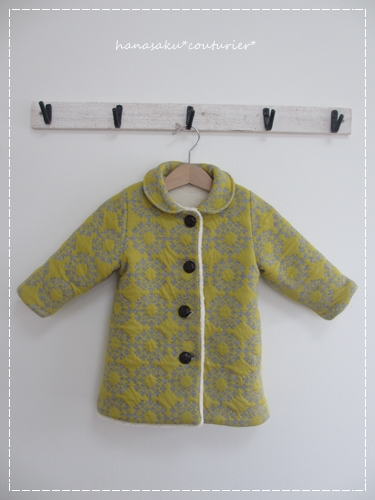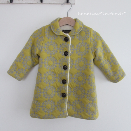 今年初めのむすめのお洋服は、ウールのコートでした。 お年始に着せたいと思ってましたが、まったく間に合わず・・ 10日も過ぎてしまいました。 娘は、どんどん活発さんになって、以前のようにお昼寝の時間もなくなって、なかなか思うように作業ができなくなったなぁ。 まあ、元気で何より!