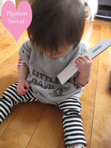 Pigmon sweat こんばんわ今日は、トレーナーを作ってみました ピグモントレーナー・・・名前からはちょっとよくわからなかったんですが、ウルトラマンの怪獣ですよね なんかギザギザしてるような・・違うかな? 前に花と桜につくったトレーナーの生地です(→☆)かなり前ですね~型紙はCOZYさんの袖がぷっくりとしたかわいいトレーナーです♪重ね着用としてもトレーナーとしても作っていただける2way型紙です!!ピグモントレーナー型紙 【キッズ・子供】80サイズです 今回は、ステンシルも挑戦USED感を出そうかと、薄めにしてみました濃くするのがめんどくなったからじゃないですよボーダーのレギンスも合わせて作りました ず~っと女の子らしさを意識して生地と型紙を選んでいたので、久しぶりに自分らしいかんじで楽しかったです もっといろんな生地で作ってみたいな 応援ぽち↓よろしくお願いします