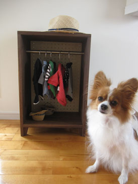 こんにちは 毎日暑い日が続いてますねこんなに暑くても、子供のったら元気いっぱいですねとにかく外で走り回りたいようで、どんなに灼熱の太陽が照りつけようが、私の手を引いて外に出ようとします 外で過ごすのはつらいので、買い物とかに出かけると、花と桜が「私たちは連れて行かないの?」と、じーっと睨みつけますそして帰ってくると、嫌がらせのおしっこが廊下に・・ もう少し涼しくなったら、みんなでお散歩して過ごせるからねわかっておくれ~ そんな感じの毎日を過ごしております さてさて~、旦那様がまた新作の家具を作ったようなので、ここでも一応ご紹介です CLOSET なかなかかわいい 今はまだ暑すぎてわんこ服着せる気にはとてもなりませんが、秋はまたお洋服作りたいな~ 応援ぽち↓よろしくお願いします