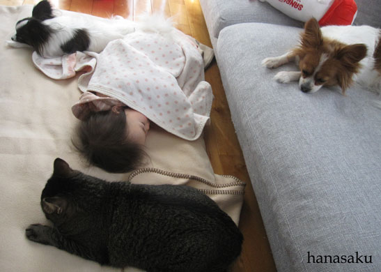 おはようございます今日の柏崎は青空が広がって、とっても気持ちのいい朝ですよ ぽかぽか陽気に誘われて、いつもそろわない子供たちがみんなでお昼寝かわいい このあとすぐ桜は2階に行っちゃったけど・・ほんとにひと時でした 今日も、何か作りたくってうずうずしてますが、何つくろっかな 昨日は、ゆずの肌着とか、小さくなった服たちを大量処分したんですかなりさみしい気持ちでしたでも、タンスぎゅうぎゅうになっちゃってたので どんどん大きくなるわが子、うれしいようなさみしいような・・ あ大きくなるといえば、花最近はかったら、4.7キロだった・・・桜のほぼ倍・・ゆずのお菓子を強引にとって食べていたのが原因だと思う1キロダイエット決行だ 応援ぽち↓よろしくお願いします