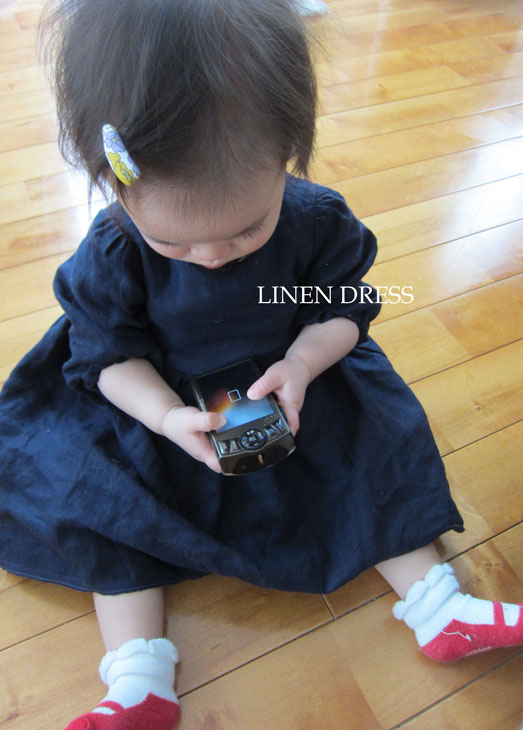 おはようございます昨日は、旦那が夜出かけて、娘が早く寝てくれたので、リネンワンピースをちくちくあとは、ボタンつけて、ボタンループを作ってつければ完成 今朝、さっそく娘に試着させたら・・・ハイハイの邪魔 足がもつれる・・・ 完全に立たないとダメですね でも、今回のリネンはとってもしなやかで素敵なリネンだったので、着せるのが楽しみ♪秋ころかな もう一着分裁断してあるから、今日も頑張って縫うぞ~ 応援ぽちいつもありがとうございますとってもとっても嬉しいですにほんブログ村