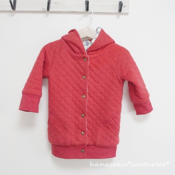 QUILTED KNIT OVERCOAT こんにちは春用コートができました 【送料無料】女の子のおしゃれ服こちらを参考に本で紹介されているのは膝丈のコートなんだけど、ゆずはまだ歩かないから、膝丈はどうかなと思って、おしりくらいの長さにしましたでも、やっぱり膝丈のほうがかわいかったな~ 型紙も90サイズからなので、【送料無料】いちばんよくわかる赤ちゃんと小さな子の服こちらのカバーオールの型紙からとりましたサイズ80です 襟はもうちょっと大きいほうがいいかなと思って、型紙よりひとまわり大きくしました コートっていうより、ジャケットですね 途中からちょっと嫌になってきて、なげやり気味に作ってしまったので、また違う生地で丈も長くして作りたいな 応援ぽち↓お願いしますにほんブログ村