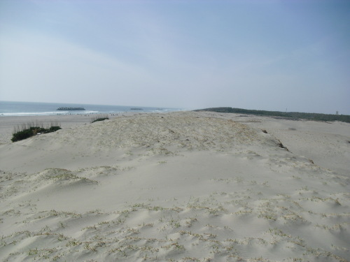 おはようございます!昨日行きましたのは浜松市の南部にある遠州大砂丘(えんしゅうだいさきゅう)の一部「中田島砂丘(なかたじまさきゅう)」です。南北0.6キロメートル、東西約4キロメートルの一部なのでかなり大きい砂丘ですね!これもほんの一部です。海が遠くに見えますよねそして砂丘といえば風紋ですよねこんな感じですね(#^.^#)この砂丘を維持するために「堆砂垣(たいさがき)」という風によって砂が飛んでいくのを防いでいる柵があります。これで砂丘が痩せるのを防いでいるのだそうです。天竜川の上流にダムを作ったので砂が流れて来ず余計これが必要なようです。よく映画などで風紋に足跡を付けた画像がでますが・・・私もしちゃいました日本三大砂丘で調べましたら鳥取砂丘・九十九里浜・中田島砂丘とありましたが鹿児島の吹上浜も大きいそうです。結構あるものなんですね子供のころ『月の砂漠』が好きでよく歌ったものですが・・・。(これは九十九里浜のことらしいですね)サハラ砂漠まではちょっと行く予定がありませんので日本の砂丘には行ってみたいと思っていた願いが叶いました連れて行ってくれた家人に感謝ですさあでは今週も頑張りましょう!