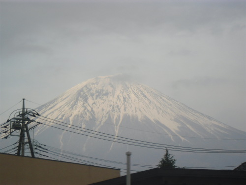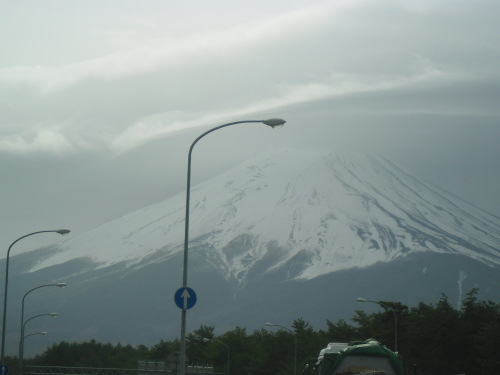 昨日は曇りがちなお天気でしたので富士山もなんとなくぼやけていました・・・これは富士スピードウェイから見た富士山です。帰るころの富士山です。頂上は雲に隠れてしまいました。今日は昨日の強風できっと綺麗に見えるのでは…と思います。今からエアロビクスに行ってきます。では今日も頑張りましょう!