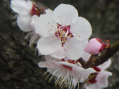ランチの帰りにちょっと寄って撮ってきました(^_-)-☆今日はたくさん咲いているところをアップしますね。そばの紅梅と紅白で撮ってみました。どちらもちょっとお手入れしてありませんので伸び放題で少々お恥ずかしいのですが・・・野趣があるということでところでこれは何でしょうフワフワした物体ですがおわかりでしょうか