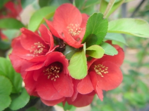 マッサージのついでに公園で「ボケ」の花を見つけました。先週は全然咲いていなかったのに・・・。この赤い色が目を引きました。 ちらほらと白も咲いています。ピンク色もありました。実はこんな風に1本の木に3色咲いているんです。ちょっと不思議ですよね。この時期咲く「ハナモモ」もこんな風に1本の木に2色から3色の花が咲きます。それにしても「ボケ」なんてちょっと可哀そうなネーミング・・・。とても可愛らしい花なんですけどね
