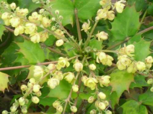 おはようございます!息子は頑張って部活に出かけました。無事に練習を終えて来てくれるようにと思います。私も息子のことを考えると気が休まらない日が続きそうです・・・。例の子がつるんでいる子が隣のクラスにいるのですがどうもこの子は発達障害の子だそうなんです。保護者繋がりでわかりました。息子がこの2人が一緒に嫌なことをすると言ってましたが納得がいく気がしました・・・。単純にいじめという問題ではなくなってきますね、こうなると。違う意味で頭が痛いです昨日「ヒイラギナンテン」の花が咲いていました。1センチにも満たないような小さい花です。「ボケ」の花の側に咲いていました。大きくしてみるとこんな感じです。ちょっと花でも見て気分転換するのには今はいい時期ですね。では今日も頑張ります!
