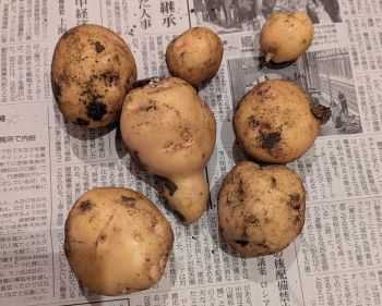 おはようございます!今日も朝から曇っています今日も少し涼しいですね。昨日は午前中の雑用を片付けて午後はイチゴ摘み1時間。通りがかりの人に何してるんですか?と聞かれイチゴ摘みと答えるとそうだと思った、と。いつも夕方しかイチゴ摘みはしません。暑いのは嫌なので。摘んだ後は少し休んでサツマイモの苗床をつくりに行きました。畝を作った後は草取り。サトイモや夏野菜の周りが草だらけなので。作物が植えてないならびっしりと細かい草の生えた畑はきれいですけどね。そのまま放置は作物がうまく育ちません。ジャガイモの葉っぱが黄色くなっていたので試し掘りしました。これはキタアカリです。一株でこれだけ・・・はちょっと少ないけれど大きさ的には充分食べられるものになっていました。もうそろそろキタアカリは収穫してもいい感じです。昨夜は息子が野菜をたくさんいただいたので持って帰ると8時頃ライン。「彼女作れ!」とちょっと思いました今日は何故か“困ったいとこ”の買い物と食事のお付き合い。忙しいんですけど・・・。ホントは動画撮りに行きたかったし皮膚科にも行きたかったんですが。仕方ない早めに切り上げてきます。昨日はジャムを2回に分けて作りました。一昨日何もしていないのでちょっと頑張りました。あと1週間くらいは作り続けるでしょう。さあ、では今日も頑張りましょう!にほんブログ村応援ポチよろしかったらお願いいたします。(1人1日1回有効です)
