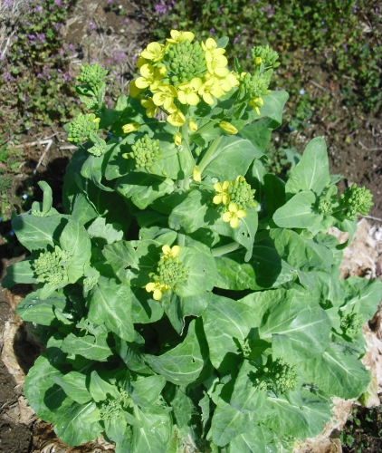 実家の畑に行きましたら小松菜に菜の花が咲きそう・・・つぼみが出ていました。 咲いていないと思ったら1つ咲いていました。 ブロッコリーももう食べられますね 今日は夏日になるそうで暑かったです