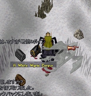 内装は完了してませんが リフォーム後のベンダー営業の為久しぶりに皮剥ぎを再開してます!まったり、育て中の弓マゲ武士を動かしてデスパイスの1Fでリザードマンを狩ろうとしているんですが・・・居ません・・・・死体しかいません・・・なんか混んでます・・・・・UO始めた頃、よく修行に来たんですが13ヶ月のUOライフの中で一番混んでます^^;S皮調達は、デスタードの蛇に変えようかな・・・今の流行はS皮なのですか???wなお、他の色は、この辺で狩ってます^^N皮は、近所で動物さんか徳の島でGamanから頂いてます。H皮は、デスタード2F行く手前でドレイクちゃんとワイバーンちゃんB皮は、IceでWWと戯れてたりButcher's War Cleaver ほんとに便利だ^^