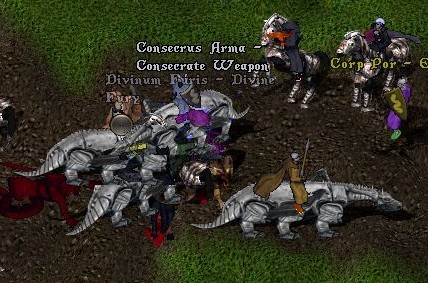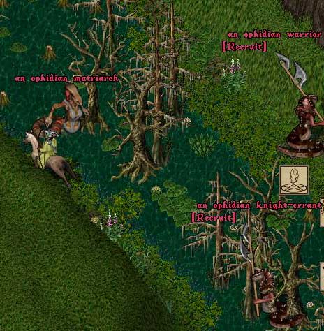 お久しぶりのUO日記ですm(__)mオフィディアンがパプアとベスパーに侵攻してきたらしいです。本日仕事中に知りました・・・(笑) これは食い止めねば!!!と帰ってくるなりUOの世界へ さっそく育成中のPM弓マゲ武士さんでベスパーへ遠足に・・・・PCがいっぱい居てラグく、なかなか出会えません。 「ほんとに侵攻してきてるのか?? でも死体はあるな。。。」てな感じです。 こうなったらパプアに行ってみよう! とリコールしようとしましたが飛べません・・・・侵攻イベント中で町へ飛べないのかな。。。。。仕方がない徒歩かorz あ。。。行き方忘れた(爆) 思案すること数分。。。確かムーングロから魔方陣で飛べたはず・・・・(飛んだこと無いですが)迷いながら魔法陣探してパプア入り^^ 行くぞ!戦うぞ!と表へ出たら いきなり追い掛け回されました(/_;) なんかいっぱい居りまする・・・・・魔法バンバン飛んでくるし 仕返しに武士盾で なんかムッチャ硬いのも居りましたよパーフェクション貯めてエネミー使ってディバイン使ってLTでガンガン切る切る切る・・・ダメ7です(/_;)延々殴ってると何故か途中で消えちゃいます・・・なんで??