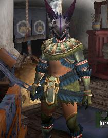 前にも書いたけど、頭は下位剣士時代につかっていたガルルガフェイク、胴から下は全部ブランゴU装備。これに防音珠1個、千里珠8個つけてスキルを発動させた。