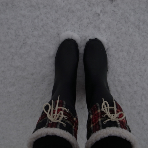 高松市は今、雪がしとしと降っております~朝からどんどん積もってきてます!で、テンションのあがった妊婦は外に出てきました~ AIGLEのブーツで歩いてみました うれしくって、足跡を残してみました~