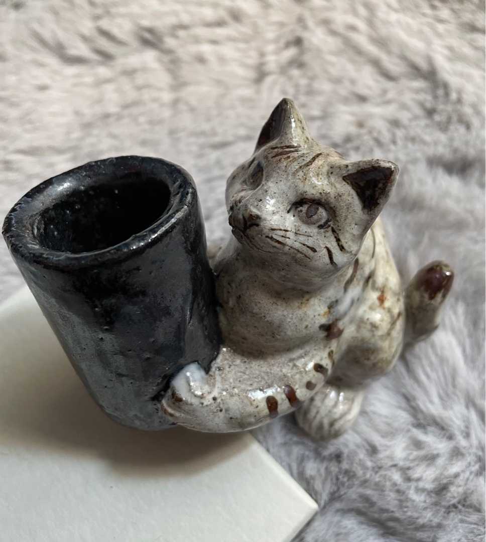 旅先でちまちまと焼き物を買ってあつめるのが好きです最近は旅行もできず、インスタみて気になっていた窯元さんの超・超・カワイイ器をゲットしました~まずは、、、花器。猫ちゃんが頑張って支えて見上げております表情がなんとも言えない手のひらサイズです。造形が素晴らしい。今年はこれにこまめにお花飾ろうかな~入っていた箱のスタンプもカワイイのです・・・そして、今回の本命は、猫茶碗こんなに立派な桐のお箱に入って届きました!全体図 なかなかの大きさですよヘリに手をかけてこっちを見てるにゃんこ茶碗の底には、猫が好きな図柄がたくさん金魚、カエル、トンボ、ねずみ、蝶、バッタ、セミ、魚のホネ・・・ど~にかして中に入りたいのかな?w後ろ姿からも必死でしがみついている様子が見てとれます高台近くには、ぐるりと猫のあしあと本当に、デザインが細部まで細かい飾っておいても良いような素晴らしい作品ではありますが、、あんま気にせず、できるだけ普段使いしようかな、と。過去に購入したコレクションをまとめて写真撮ってみました。こちらは桜島の窯元さんで買った、コーヒーカップとソーサーのセット。火山灰が含まれていて、金属のような光沢が面白い。特に葉っぱのお皿は和菓子を載せるのにちょうどよい。北鎌倉の窯元で、母の退職祝いに手作り花瓶を作ったときにショップで購入した器。色んな作家さんの作品がたくさん並んでいて。。。結構悩んだ結果、特に作者名も見ずにフィーリングで手に取ったこの器は、なんと、手作り体験で教えてくれた先生の器です、とレジで教えていただき・・・・すごく偶然なんだけど、感慨深い思い出があるお皿です。やっぱり、良いものは伝わるんでしょうね。深さといい、大きさといい、厚みといい、とても使いやすく料理を盛るにも、フルーツを切っておくのにも、おつまみを出すのにもなんにでも合うお皿。外側はこんな色。シンプルなデザインなのも飽きがこない理由かも。こちらは沖縄で購入したRyuさんのお皿。沖縄の美しいグリーンブルーを彷彿とさせる色に一目ぼれして購入。ちょっと大きめなので、ハレの日の大皿として活躍中。でも普通にラタトゥイユを盛ったりしても素敵。裏返してみてみたらRの署名が入っていました。こだわりを感じるな~ほかにもやちむん通りではカワイイ柄のお皿や浅いめの器、マグカップ、ハリネズミの豆皿など結構買い込みましたまあでも割愛。最後に、山本貴美子さんの、最高に素晴らしくかわいいお皿ティファニーブルーのような色、非常に細かい模様、金彩・・・艶やかさのすべてがつまったような、ゴージャスなお皿。ちょっとお高いケーキと薫り高い紅茶と一緒にゆったりティータイム、のようなときに使っています。唐津のパンフレットも同封してくれて、唐津行ってみたいなーと思った。有田や波佐見も。少しずつ、集めていこう~