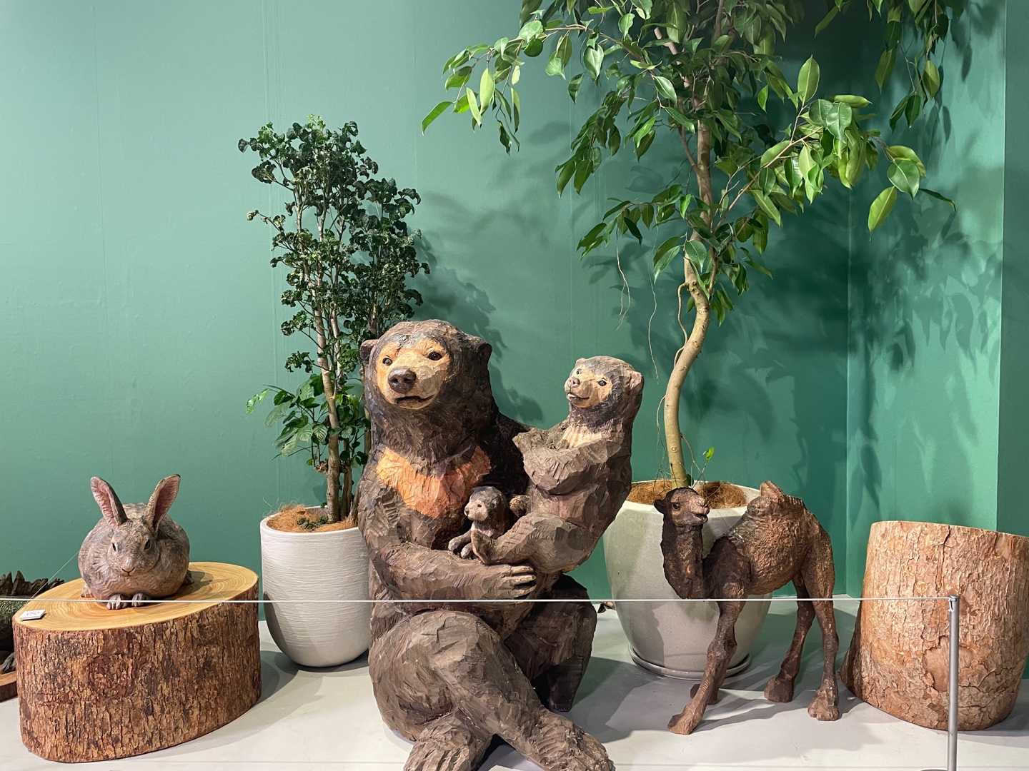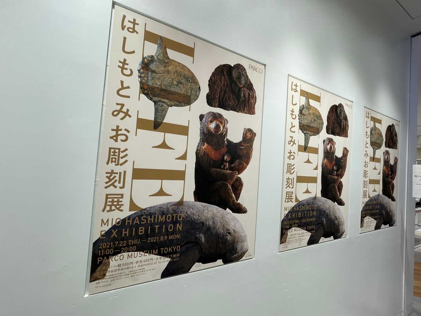 大・大・大好きな、はしもとみおさんの展覧会、感染拡大が怖いなかではありましたが、行ってまいりました~ぜったい、行きたかったんだもん・・・最・最・最高でした・・・!行ってよかった~会場は、渋谷PARCO内で、ものすごく広いわけではないんだけど、3つのテーマで区切られた展示スペースに、そこかしこに素晴らしい彫刻動物の数々!ゆったりじっくり見ることができたし、その種類の多さ、数の多さ、1点1点のクオリティの高さ、時間を忘れて会場に滞在し、作品を堪能することができました・・これで入場料500円 私にとっては、すごく安いですまずは、彫刻家のアトリエを再現したテーマ・・・つぎは、ジャングルの動物たち・・・ (かな? 展示全体で、ひとつひとつに細かいキャプションや説明の文字情報はなし)さいごに、海のいきものたち・・・すべてが圧巻の展示でした。写真撮影可だったので写真の枚数がとんでもないことに!笑入口をはいったら、わさおくんの絵と、黒柴月くんがお出迎えアトリエを再現したデスクの上には魅力的な動物たちがたくさん!足元にお腹みせて寝転がる黒柴ちゃん・・。こんな光景で、制作されているでしょうね・・猫ちゃんもたくさん。みんな、生きているかのよう。この猫ちゃんなんか、時が止まっているだけのように見える動き出しそうだもん!階段には、月くんがたくさん・・・目を合わせるように立つと、じっとこちらを見ているようで、なんとも不思議な気分になる。。。こいぬの黒柴ちゃんもめっちゃめちゃカワイイ壁にかけられているレリーフ、小さい作品なんだけど、1つ1つ、とても丁寧な彫りで作られているのが、遠目からでもわかりました。部屋の中央には、制作途中の様子・・・木から生命を削りだしているようですね・・・いぬのミニチュアがぎっしりのキャビネット!これを1つ1つ見ているだけで、時間が過ぎてゆきますキャビネットの横には、はしもとみおさんが大事にされている言葉なのかな?芸術家っぽいな~とおもってみてました。次のお部屋が森の動物たちです。その2に続く。
