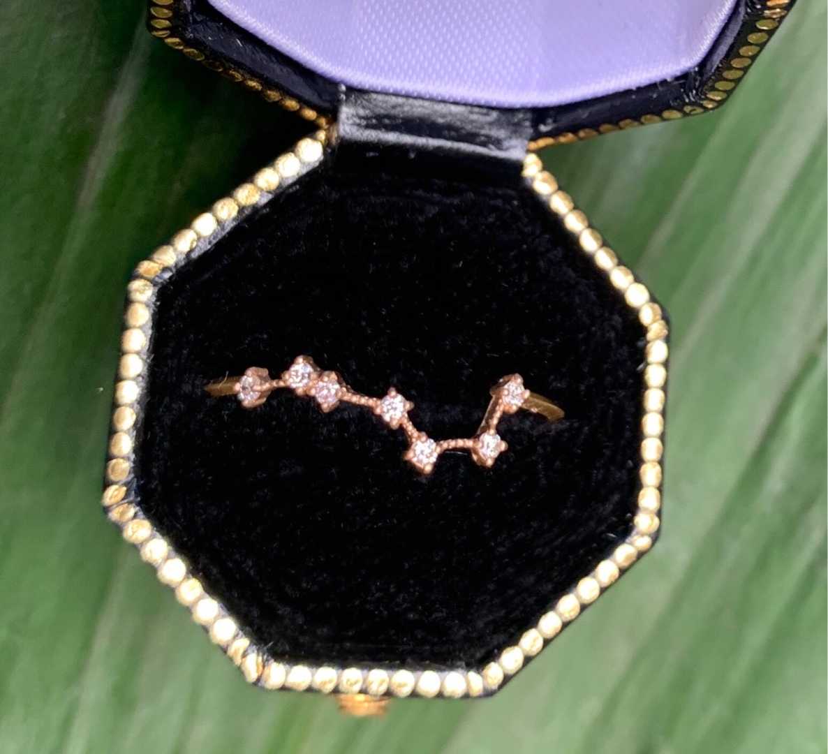 私の華奢リングが更新されました・・・・ もともと、私は星座や天体観測がすごく好きで。 去年、伊豆に行ったときに、ゆっくり焚火にあたりながら夜空を眺めたのも 楽しかったなぁ いつか、星座のリングがほしい、と漠然と思っていた。 でも自分の星座(蠍座)はあまり形が好きじゃないし・・・ そもそも形が美しい星座の方が少ないような? 王道だけど、北斗七星はやはり完成度の高い形よね。 既製品をお迎えしました。 一応ホワイトデーってことでもらったリングだけど、支払いと受け取りにいったの私なので お買い物カテゴリで めっちゃめちゃカワイイんですよ!! ただ、細い!でもカワイイ!!細いからこその可愛さなのかも 私が持っていた華奢リングといえば、ヴァネッサリングか、トリートレッドダイアのリング だったんだけど、それを遥に上回る(下回る、か?)細さ! まるで糸ですよ、糸! ヴァネッサリングは、本当に金の太いワイヤーみたいで、デザインは好きだけど 着け心地が物足りなく、あまり出番がなかったんだけど、 アルコール消毒しまくりの昨今の情勢下では、途端に大活躍中! こちらの北斗七星リングも、金とダイアだし、この細さ、 着けてること忘れますわ。 北斗七星は、色んな作品にもモチーフで出てくるよね~~ こちらは、4年前にオルセー美術館で見た、ゴッホの「星降る夜」 北斗七星が描かれています~ こんな素敵な絵画、周りに誰もいないところでゆっくり見られて・・・最高。 日本に来たら、大行列のうえ、歩きながら見させられるんだろうな。。 なんだかんだ言っていますが、小さいダイアすべてがとても輝く石が使われており、 指にはめていると本当にキラキラして、見飽きないリングです。 左から3つめのダイアはピンクダイアだそうです。 でも、小さいし、肉眼ではぜんぜんピンクみはわかんない。 目で見てわからない程度の輝きの悪いピンクダイア使われるくらいなら 全部輝くホワイトダイアでいいのになと思ったり 最近読んでいる高橋留美子の「MAO」でも北斗七星がでてきた ここで言う「廉貞」の位置がピンクダイアだそうです。 マクロレンズで撮って拡大すると、うっすらピンクが分かるかな? グダグダ書いてしまったけど、大変ご満足のリングですよ