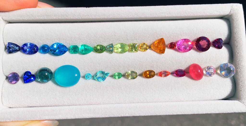 プリズマティンとはなんぞやこの石のこと横浜ミネラルザワールドでのもう1つの購入品。要は、コーネルピンなんだそうです。バナジウムコーネルピンっていうのは聞いたことがあった。バナジウムが入るとミントグリーンの色になるのよね(バナジウムクリソベリルとかも)で、バナジウムコーネルピンにホウ素が入るとプリズマティンと呼ばれるんだって~ソーティングもついていました。ホウ素って、私が好きなエレメジェバイトの構成要素でもあるよなーコーネルピンって褐色グリーンとか薄ーい濁ったグリーン、淡いブルーの石というイメージだったなので、こんなに鮮やかな色があるなんて、本当にびっくり!多色性も感じる、素晴らしいクオリティお店の方のマイコレクションにしていたのを放出したという話を聞いてこれ幸いにと買ってしまいましたカットが良いのか、非常に煌めきますネオンカラーの石に集まってもらいました~ド定番のスピネルとパライバは良いとして、私のなかでは、ネオンイエロー枠はパロットクリソベリルだったんだけどこうしてみると、シルキーな輝きかも?イエローグリーンだけどデマントイドにその座を明け渡してもよいかもしれないふと、おもいついて、ラベンダーゾイサイトとライラックスピネル、そして普通のタンザナイトと色比べ。お花の名前がついていると、石の色の魅力は倍増するね~
