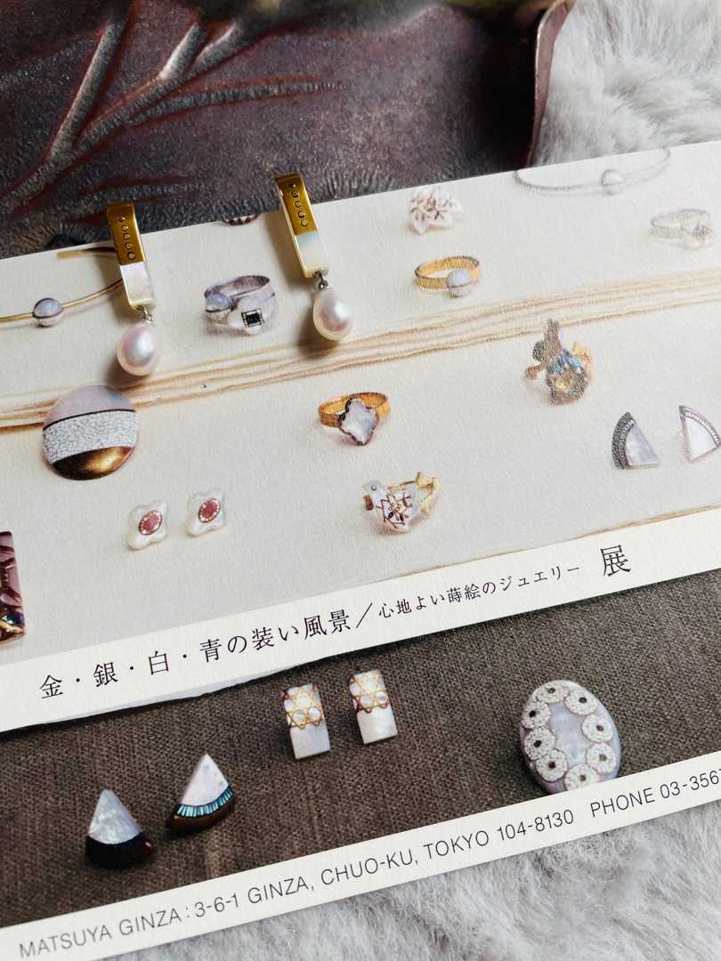 コチラが、衝動買いしてしまったお品でございます。。Classic Koさんというブランドだそう。たまたまイベント出展していたところにふらり偶然!立ち寄ってしまいました蒔絵と螺鈿の細工物が美しいジュエリーたち・・蒔絵もの、実はずっと気になってたんだけど、よく見かけるものはお盆とか重箱とか、、小さいジュエリーってあまり見なかったんだよね。あっても、ウッドビーズがベースの帯留めとか。こちらでは、白蝶貝やパールの上に繊細な蒔絵や螺鈿が施されていて逸品ものだと琥珀の上に絵がかかれているものもデザインも素敵で見ていて飽きませんでした。まさに!こういうのが欲しかったの!!興味はあったのに、蒔絵と螺鈿を正しく理解していなかったワタクシ・・・漆や貝の上に、金や銀を塗り重ねて絵を描くのが蒔絵。青や緑のキラキラした貝の破片をモザイクのように敷き詰めて絵描くのが螺鈿。その両方が良く一緒に用いられているから同じようなもんだと思っていた。自分の好みのがありすぎて、目移りして選ぶのが大変でした。悩んで今回選んだのは、蒔絵のピアス。。めっちゃ可愛い・・・・片方のパールがほのかにピンクみが強いところもお気に入り。春はやっぱりパールだよね~螺鈿細工のものもすごく気になったんだけど、今回は蒔絵のみ!蒔絵部分は24金なので、金の色も軽すぎないのが良い。。それなのにお手頃お値段でした。螺鈿のは、また、次回!蒔絵 螺鈿 白蝶貝 真珠・・・・・日本語の美しさこれでもか?と主張してくる言葉たち・・響きも字面も良い。そのすべてがぎゅっと詰まったピアスなんて、素敵じゃない螺鈿は入ってないけど~明日はまた散財予定のイベントあり、、ものすごく楽しみ~~お金おろしていくんだー