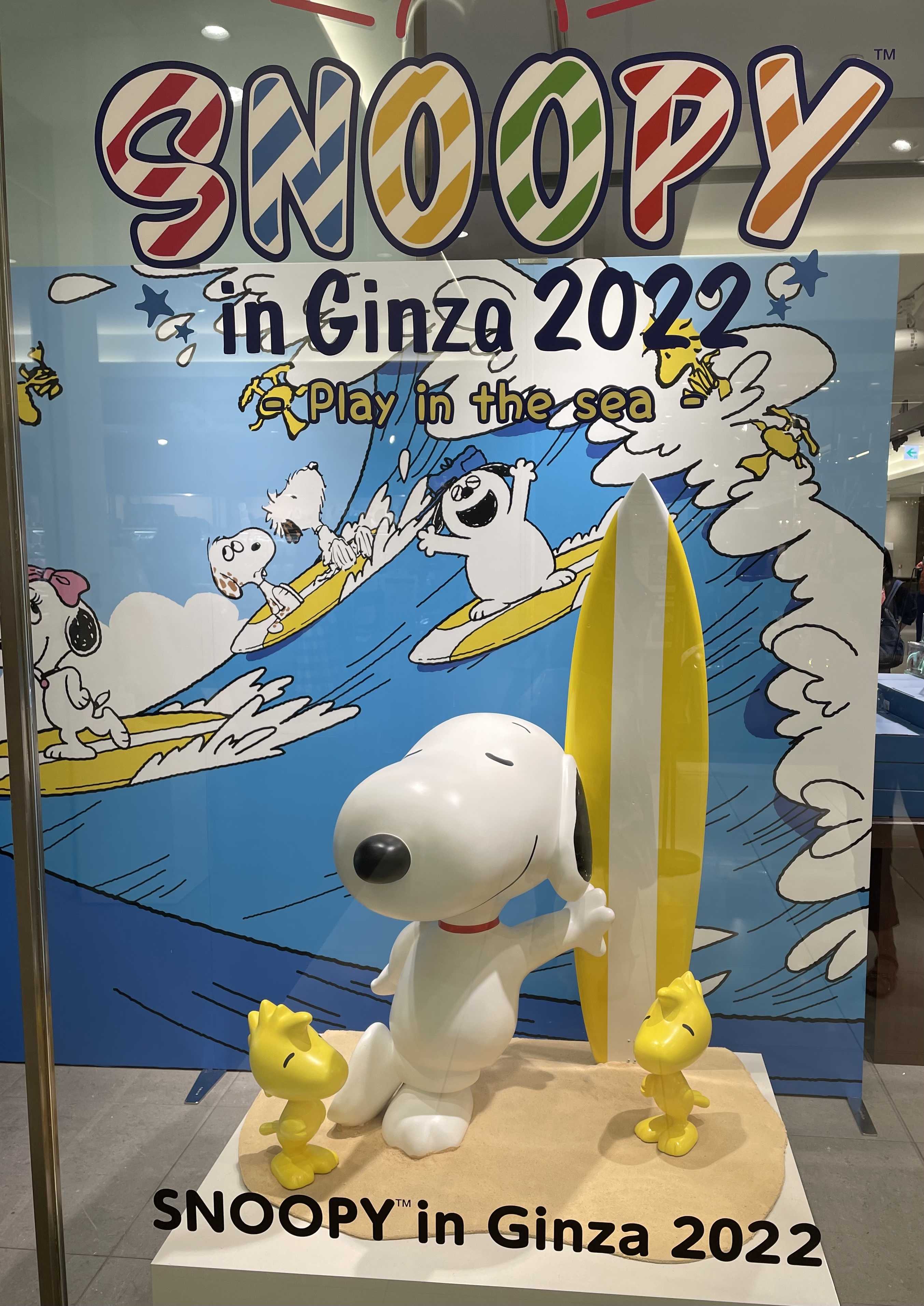 行ってきたよ~スヌーピー in Ginza 2022 夏の海で楽しそう三越の1Fには、海の家がでていた!これを見てしまったら、ふらふら~~っと誘われるように7Fへ・・・・すっかりヤツらの思うつぼです。。でもねえーー今回はかなり厳選に厳選を重ね!こちらをご購入~~~だって、毎年毎年買ってたら、家中がスヌーピーだらけになりかねん!ふわもこがカワイイミニバックは、ラス1をゲットしました。あとTシャツと部屋着にするロングワンピ。ついでにオラフの福だるま鈴は、偶然目が合ってしまって・・・・他にもこのシリーズ、スヌやウッドストック、ベルもあってそれぞれが音色の違う鈴 凝ってる。迷ったんだけど、結局どれも可愛いから、最初に目があったまぬけ顔オラフにしました。会場は女性ばかりで、そこら中で「カワイイ~~~」「あーこれもカワイイーーーー」の声がwうんうん、かわいいよね、わかる~~!って自分のテンションも上がっていくので買う気がなくても何か買ってしまう、摩天楼です。要注意!!笑三越の別の売り場の店員さんの話では、初日はエスカレーター長蛇の列だったみたい。ガチ勢は初日から乗り込むんだね。諸先輩方に頭が下がります。でも、私が行ったタイミングで、バッグもラス1だし、他にも店員さんに在庫を聞いているほかのお客さんのやり取り聞いてると売り切れが出てるみたいだし、8月までなのに大丈夫なのかしらースヌの魔力よ・・・(・”(●)ディスプレイも可愛かったので写真を撮りました