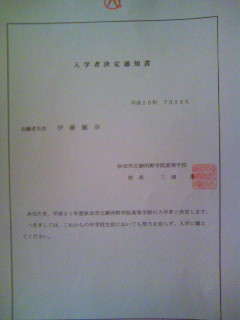 まぁ高校合格おめでとうございますでd(≧∀≦)b (2008.07.31 14:09:55)