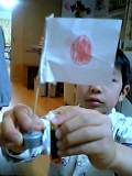 パパからもらったモーターに日本の国旗をくっつけて・・・